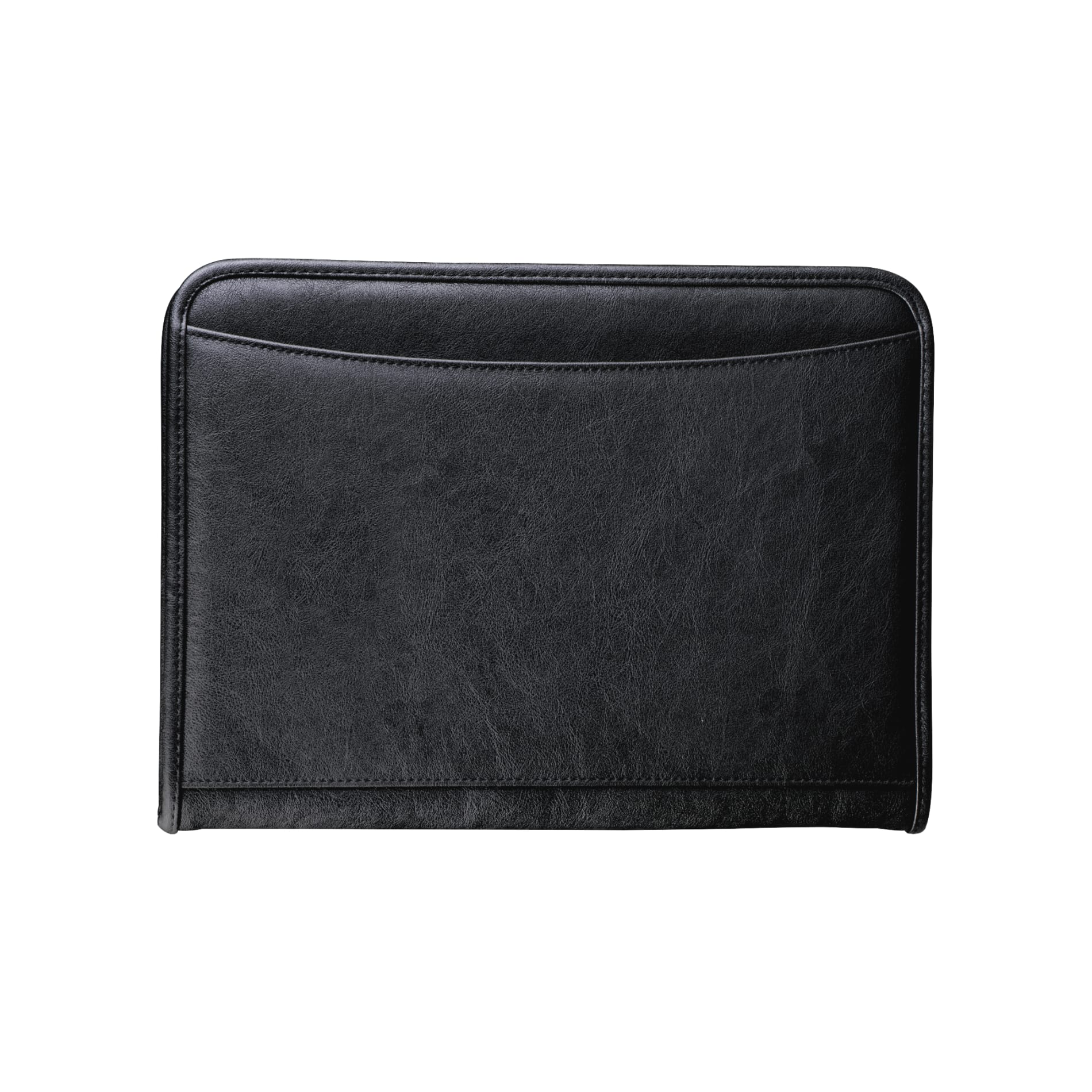 The premium Executive DuraHyde Zippered Padfolio with FSC® Mix Paper features an interior organizer with gusseted file pocket. This zippered closure padfolio includes Clear ID or calculator pocket and front slot pocket. The Executive DuraHyde Zippered Padfolio includes a 8.5" x 11" FSC® Mix writing pad. Refills available leedsworldrefill. Refill item number: 9091-01. Pen not included.