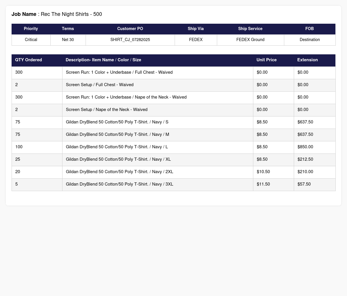 | Screen Run: 1 Color + Underbase / Full Chest - Waived | 0.00 | 300 |