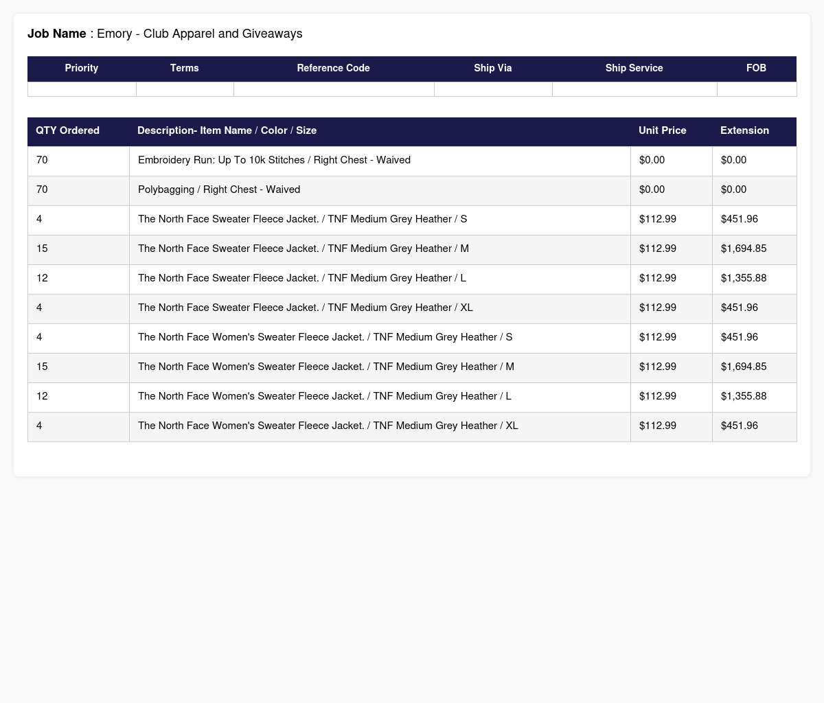 | Embroidery Run: Up To 10k Stitches / Right Chest - Waived | 0.00 | 70 |